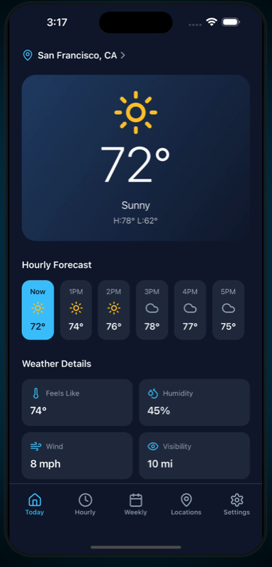 “Beautiful weather UI with smooth animations. The gradient system and dark mode support are top-notch.”