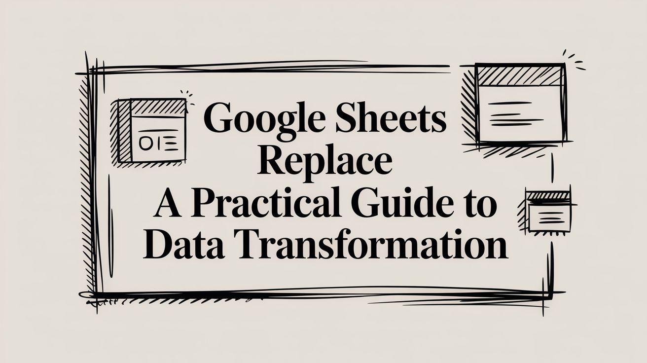 Google Sheets gives us three heavy hitters for this job: REPLACE, SUBSTITUTE, and the incredibly powerful REGEXREPLACE. Each one tackles the problem from a different angle, and knowing which one to grab is what separates a frustrating afternoon from a smooth, efficient workflow.